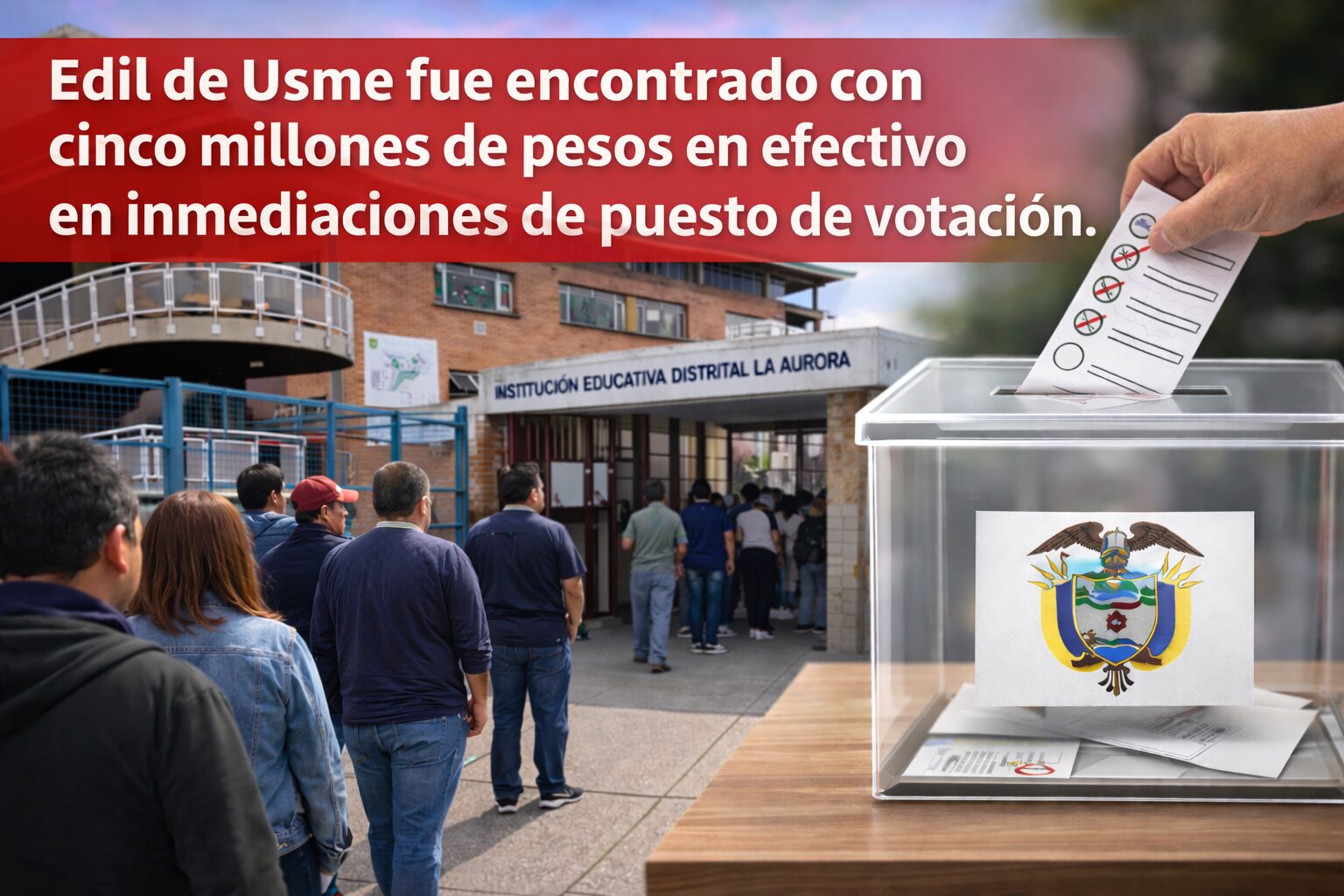 Durante la jornada electoral del 8 de marzo de 2026 en Colombia, se registró un hecho que generó controversia en la localidad de Usme, luego de que el edil Darwin Farud Peña Ortiz, quien mantiene este cargo público desde hace ya varios años, fuera requerido por uniformados de la Policía y le encontraran 5 millones de pesos en efectivo en las inmediaciones del puesto de votación ubicado en la Institución Educativa Distrital La Aurora, al sur de Bogotá.